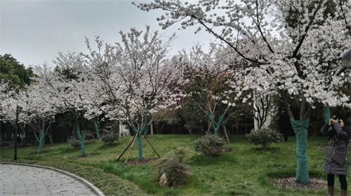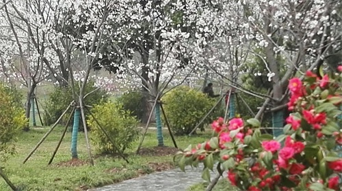 据了解,早樱先花后叶,多呈白色,盛开时花色如雪;晚樱花叶同放,姹紫嫣红;公园樱花坡的垂枝樱花也格外美丽,花开如瀑,气势磅礴。早春时节,堤角公园除了樱花,还有紫玉兰、垂丝海棠、贴梗海棠、美人梅、连翘、迎春、茶花、杏、李等也缤纷怒放,真是满园春色关不住。