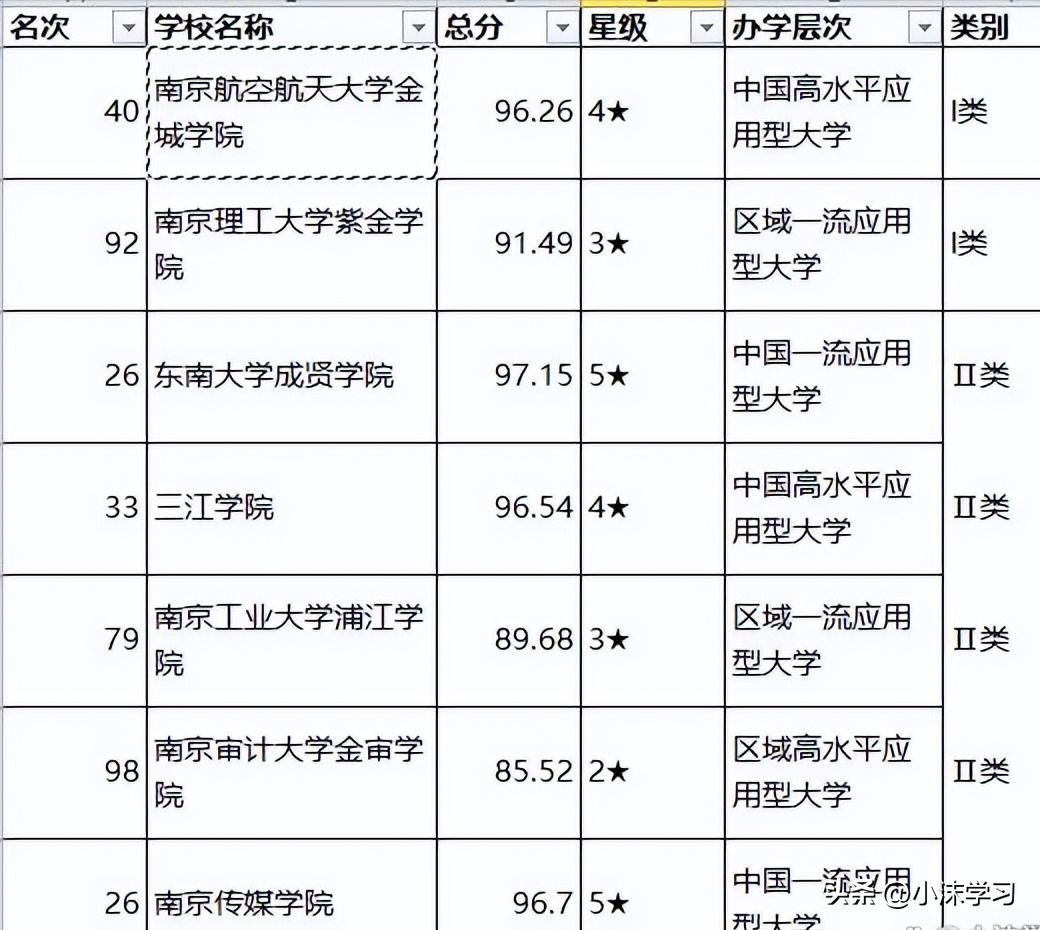 Ⅱ类高校:东南大学成贤学院,三江学院,南京工业大学浦江学院,南京审计大学金审学院。