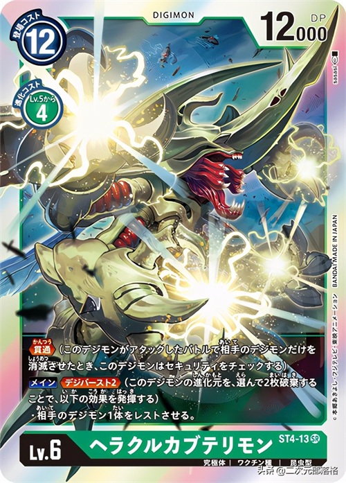 从外观上就可以看出力神比多兽不凡,配色直接用上了金黄色,并且还加强了飞行能力,据说能够用超音速在数码世界驰骋,少有数码兽能够在它面前逃脱;并且还有着巨大的角和钳,要是被顶上一下的话,只怕会重伤。