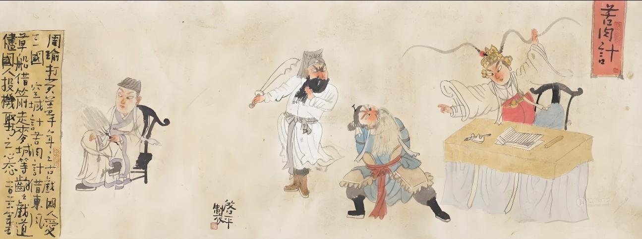 第32计 空城计:诸葛亮摇着扇子站在一座空空的城墙上,使出了空城计。