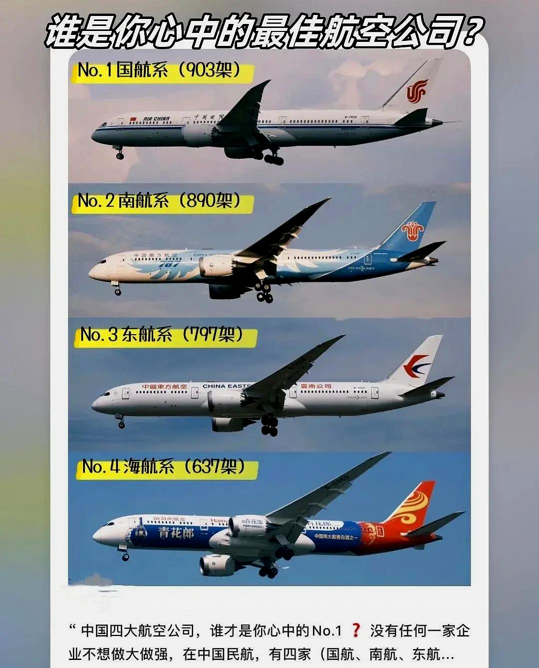 总的来说,中国民航业的四大巨头——国航、南航、东航、海航——在竞争成为最佳航空公司的过程中,不仅展示了其在规模、网络和服务上的实力,也体现了其对于市场变化和旅客需求的敏锐洞察。虽然每家公司都有其独特的优势和特色,但在这个多元化和竞争激烈的市场中,能够不断创新并满足旅客个性化需求的航空公司,最终将在竞争中脱颖而出,赢得旅客的青睐。