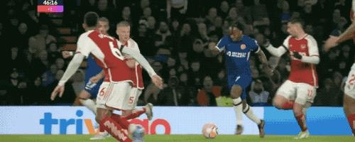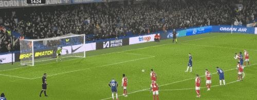 裁判叫停比赛,VAR介入,慢镜回放显示穆德里克的头球击中了萨利巴的手上,切尔西获得点球。帕尔默主罚点球,成功骗过了拉亚,攻破了阿森纳的球门,