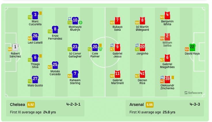 本轮比赛开始前以进球数的劣势排名第二。两支球队的总身价也有所差别,切尔西达到了9.1亿,而阿森纳更是高达11.9亿。这场比赛备受期待。第12分钟,