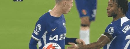 为切尔西取得领先进球。斯特林在比赛中表现出色,但他显得有些无奈和落寞。慢镜回放显示,斯特林本想主罚点球,但帕尔默也是当仁不让。