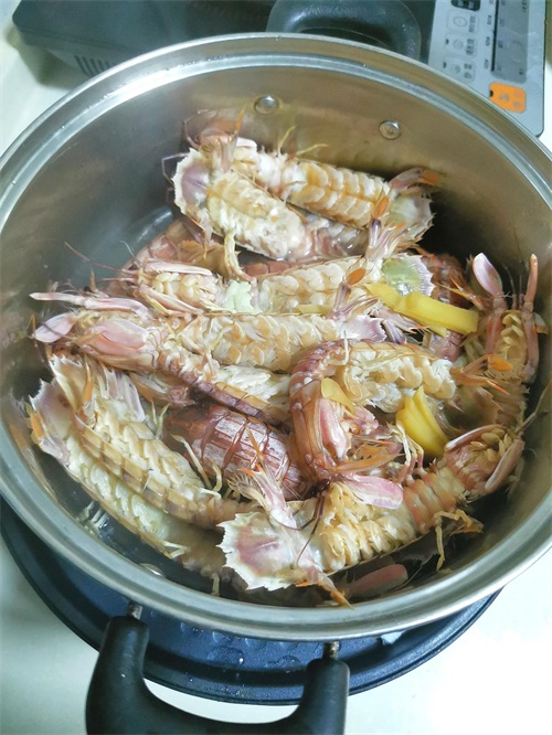 虾婆最适宜清蒸或水煮,保留本真的鲜味。每年农历三月,连云港海州湾渔场的虾婆黄满肉肥,是一年中最适合食用的季节。制作起来非常简单,将虾婆洗净,葱姜切大片,蒸、煮随意,冷水下锅,大火煮8-10分钟,水煮开之后,再继续煮3分钟左右,即可装盘,佐以姜米和当地的特产汪恕有滴醋,美味敬请享用。
