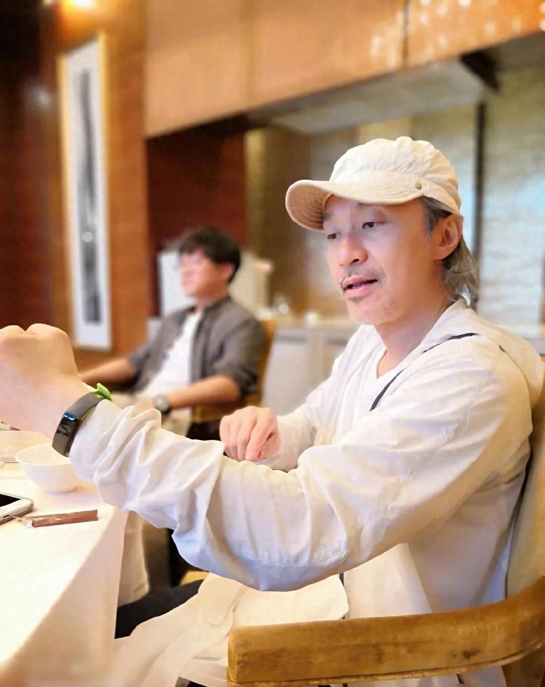 62岁周星驰和朋友聚会,双鬓花白,身形消瘦,长相几十年没啥变化