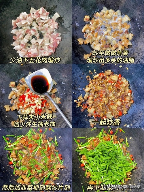 1、韭菜:五花肉炒韭菜!