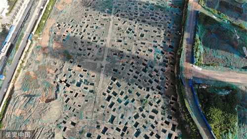 西安在建楼盘挖出战国墓葬群 航拍画面震撼
