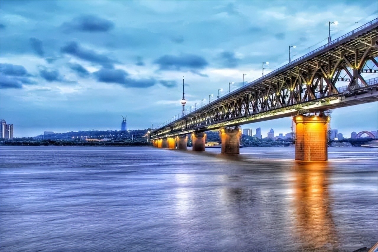 武汉长江大桥位于武昌蛇山和汉阳龟山之间的江面上,是新中国成立后在长江上修建的第一座复线铁路、公路两用桥,是长江上的第一座大桥,被称为“万里长江第一桥”,是武汉市的标志性建筑。