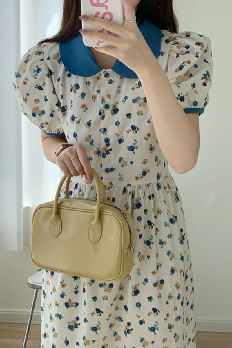 推荐:抽褶+泡泡袖+方领+碎花+法式