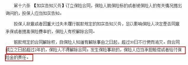 该人士解释,在保险合同的交易中,如实告知是保险最大诚信原则的体现,也是认定保险合同是否能真实生效至关重要的前提条件。我国《保险法》第十六条也明确规定,“投保人故意不履行如实告知义务的,保险人对于合同解除前发生的保险事故,不承担赔偿或者给付保险金的责任,并不退还保险费。”