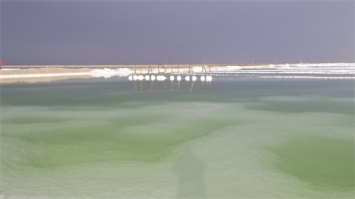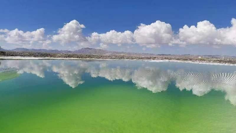 亚洲最大、世界第二的察尔汗盐湖是几年前去过的。其万丈盐桥蔚为壮观,盐花玲珑绰约。虽称盐桥,其实并非桥梁,其下无水无礅,它是将盐湖一分为二的道路,既非土路,亦非柏油路、水泥路,而是由盐铺就的盐路。此盐桥长32公里,一丈为3米,故称万丈盐桥。乘车行经桥上,远望前方的盐湖,只见水天相接处是另一段盐桥,桥上是天空,桥下是盐湖;漫步桥上,近观眼前的湖面,绿水盈盈,令人叹为观止。我曾于盐桥上漫步良久,时时驻足于嫩绿的湖水边,欣赏这荡漾的绿波,沉醉着,感叹着,这大自然的伟力多么神奇!