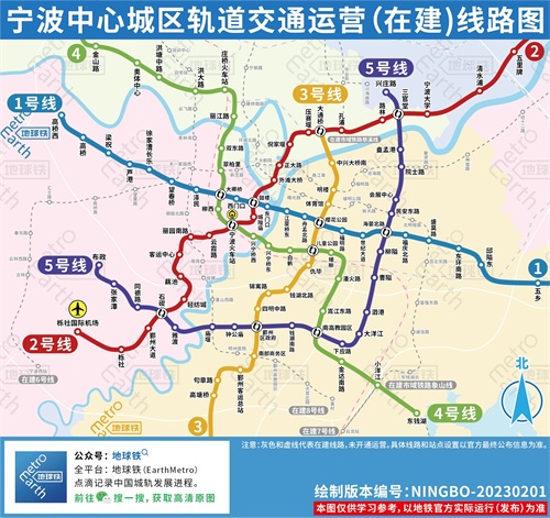 宁波地铁线路图,宁波轨道交通运营(在建)线路图