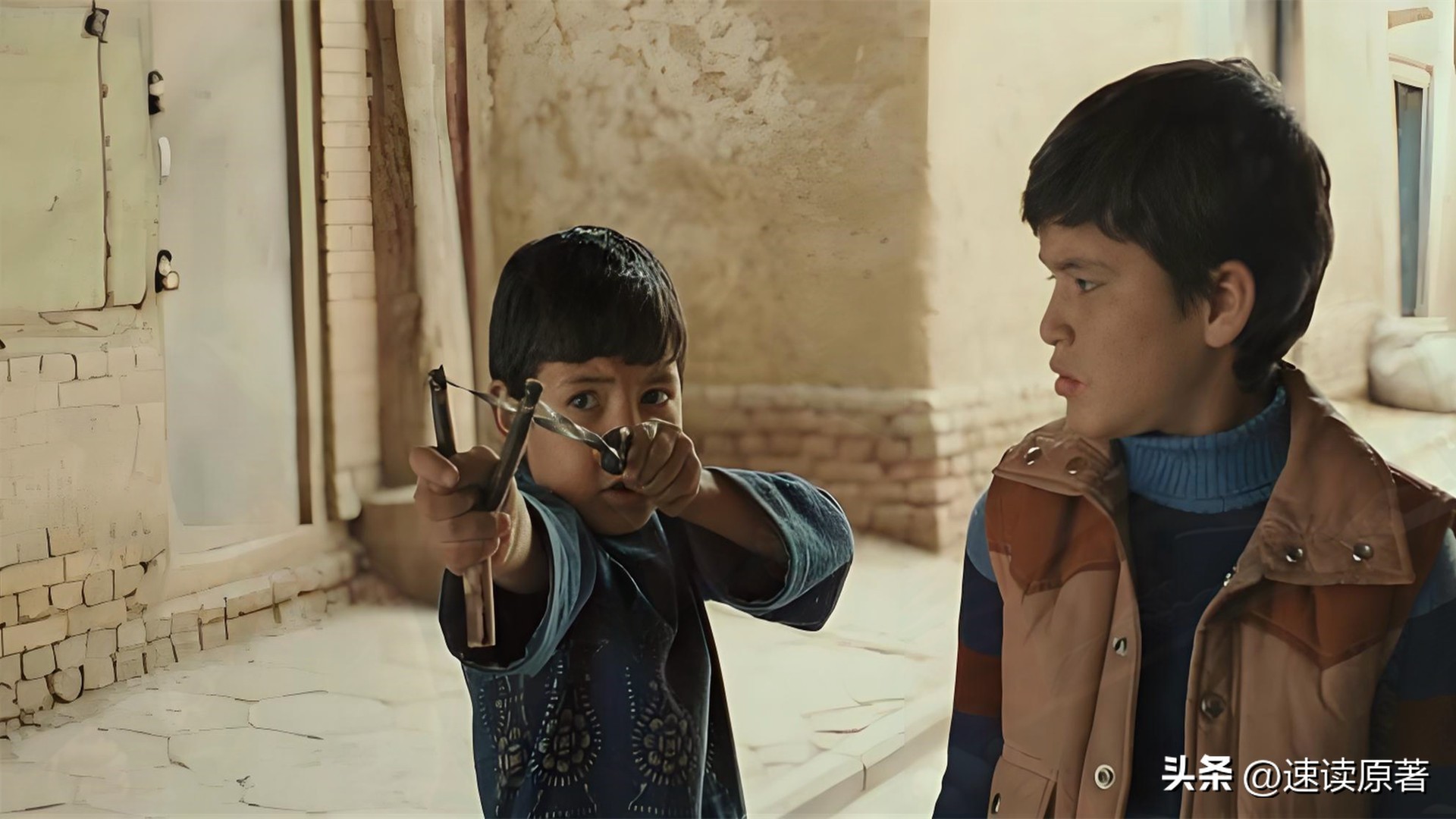 社区里有个小屁孩阿塞夫,是个纳粹迷,跟阿米尔、哈桑不对付。哈桑二话不说,弹弓伺候,完美护驾。