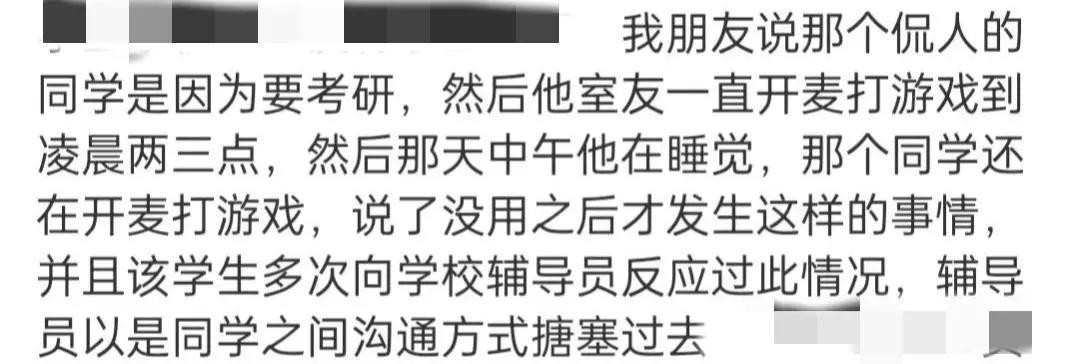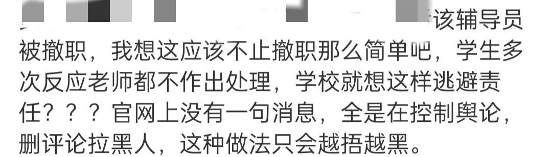 有学生在网上发声,认为辅导员有不可推卸的责任,学校却总想着控制舆论,逃避责任,这样的做法只会越捂越黑。