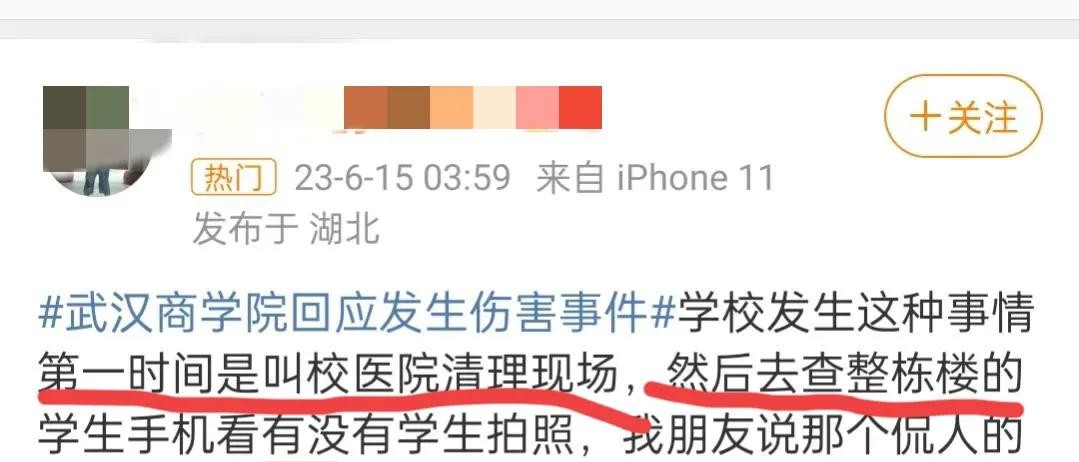 6月12日,有网友爆料武汉商学院发生一起持刀砍人事件。造成一名学生死亡,一名学生受伤。