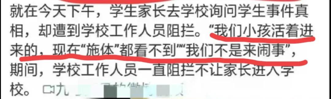 家属得知孩子出事后,来到学校询问事情真相,没想到却遭到学校工作人员的阻拦。