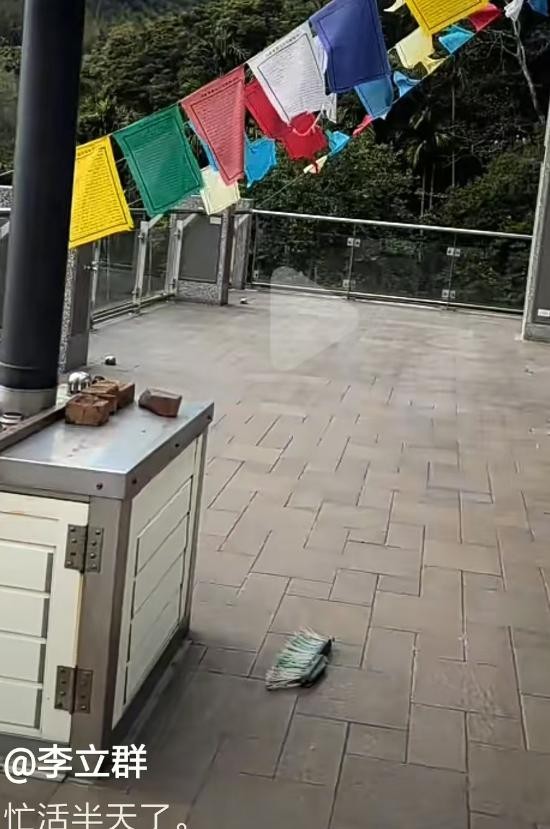 他还晒过自家的阳台,阳台非常宽敞明亮,上面还挂了不少的经幡。