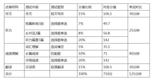 英语四级考试题型分数分值及答题时间分配