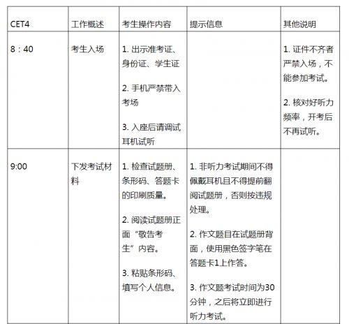 CET4听力时间为25分钟,考试起止时间调整为9:00-11:20。