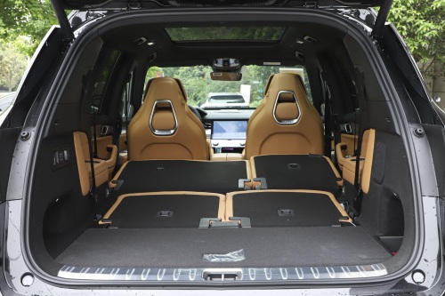 得益于5042mm的车长和将近3米的轴距加持,领克09采用2+3+2七座布局同样十分宽裕,同时领克09的空间利用率也饿比较理想,该车的三排支持立起以及电动放倒,从而扩容出高793mm的宽大后备箱,占地较大的钓鱼装备、长滑板等物品也能一并打包带走。若将二、三排同时放倒,则可形成一个2米多的“双人车床”,像露营车一样舒适又方便。