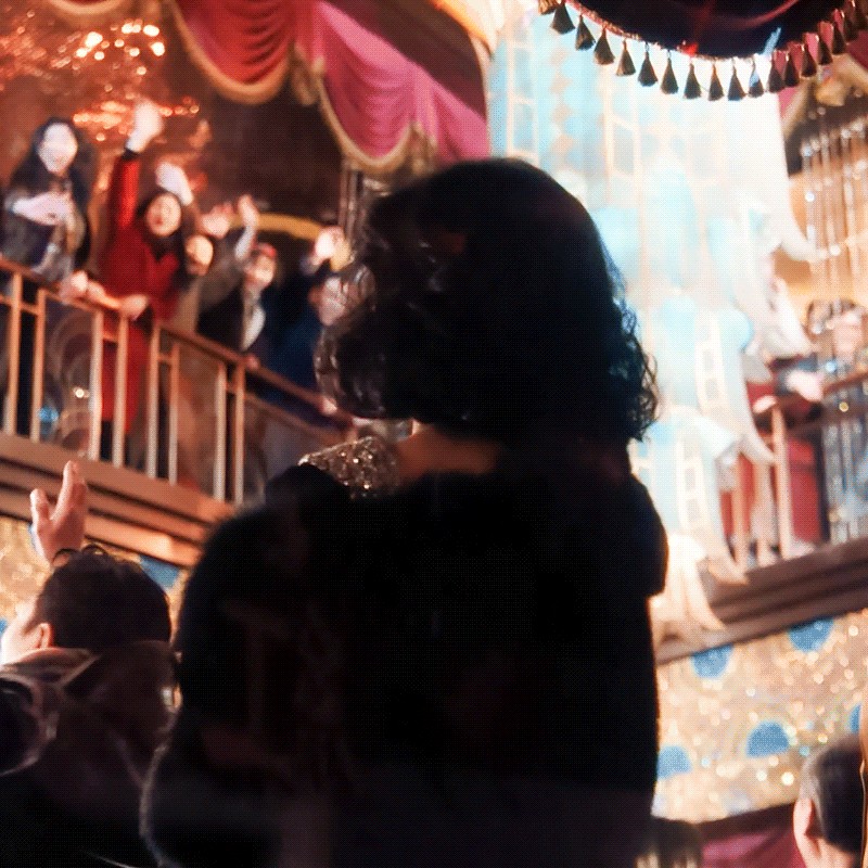 昏黄的灯光与辛芷蕾身上的银色长裙交相辉映,好一副美不胜收的场面!