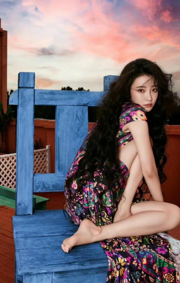 这张造型中,孙怡身穿花色长裙,大秀美腿,迷离的眼神更是透过屏幕都能感受到她满满的荷尔蒙气息。
