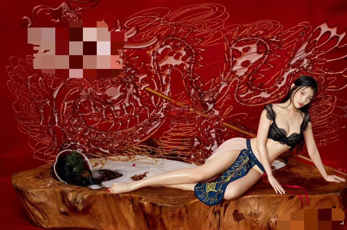 徐冬冬侧躺着便是一番美景,S型的火辣曲线搭配上她妩媚的面孔,从头美到脚,人间绝色也不过如此。