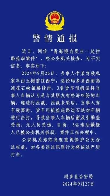 反转了?青海无人区3人砸车抢劫后续:警方通报原因,砸车人太冤