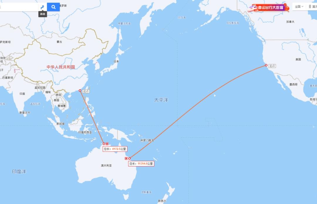 在实弹射击后,我军舰队改变航向,开始向西航行,看运动轨迹是打算把整个澳大利亚航行一圈。