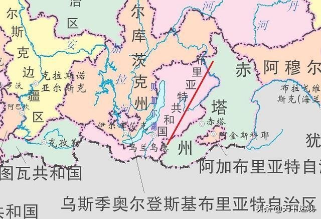 南邻蒙古国,西邻图瓦共和国,而北部与西北部与伊尔库茨克州接壤,东邻外贝加尔边疆区。