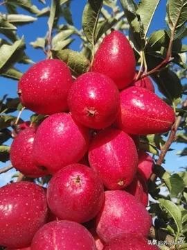 锦绣海棠,俗称鸡心果,实际是海棠果的一种。鸡心果就像是袖珍心形小苹果,果实非常的小,但是色彩鲜红艳丽,极度丰产,味道酸甜可口。