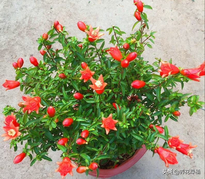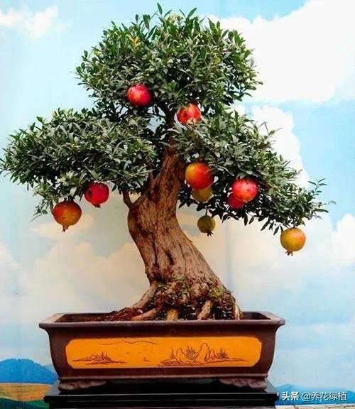 盆栽石榴,可供观赏的景象比较多,不仅能观花,还能观果,关键还是一种非常难得的盆景植物。