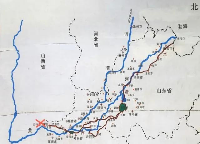 济水从雷泽向北流出,从山东境内,流向渤海。而黄河从雷泽流出入淮河,从淮河入海。黄河之水当时夺淮入海,入的是黄海。而不是今天的渤海。