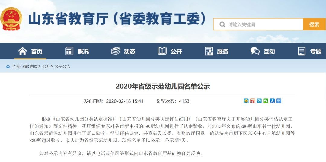 《2020年省级示范幼儿园名单公示》,