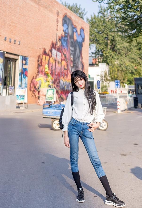 黑长直与大浓妆果然还是很适合艾比的,令他看上去美得更加出众。而这次换上了裤装造型的艾比,穿上了白色的灯笼袖衬衫,给人一种淑女范十足的感觉。紧身裤对于艾比来说,也是一个蛮大的挑战,很好的修饰了她的纤细大长腿。像艾比一样,在裤脚包裹住长袜的穿搭,也是非常个性吸睛,不愧是网红中的时尚达人,这样的穿搭你们喜欢吗?