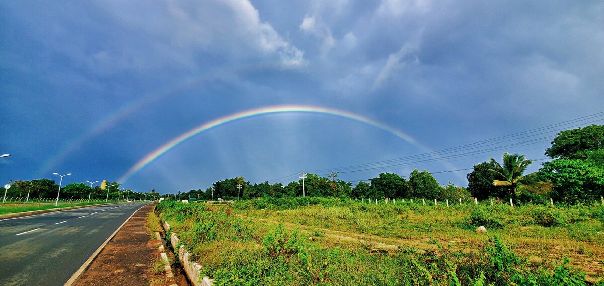 其实所有彩虹都是完整的圆形,只是因为它们被地面和地平线挡住了一部分,所以看起来是拱形。如果站在地面,将无法看到彩虹圆圈的下半部分。事实上,被地平线“淹没”的彩虹下半部分都是不可见的。其中一个原因是地球表面的紧密,限制了光线的反射。