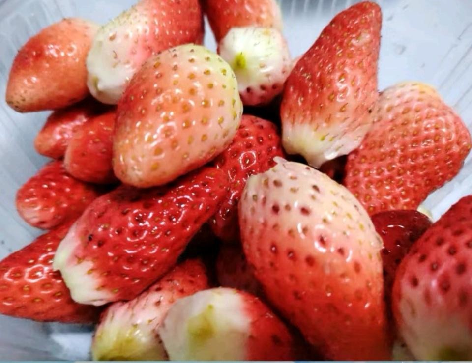 1、将草莓洗净后去蒂,切成小块备用。
