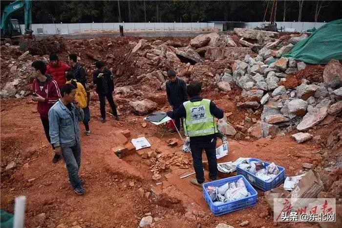 据报道,1月6日,在位于中山大学广州校区南校园春晖园食堂旁的工地现场,考古人员正在测量墓穴大小,标记随葬品数量和位置,绘制墓穴的平面图。