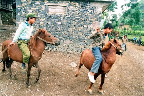 广西百色地区,两名儿童骑在矮马上,驾驭自如(1988年摄)。新华社记者 熊春雷 摄