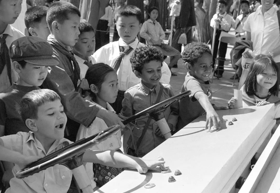 北京市少年儿童和在北京的外国小朋友,在劳动人民文化宫一起欢度六一儿童节(1974年6月1日摄)。新华社发