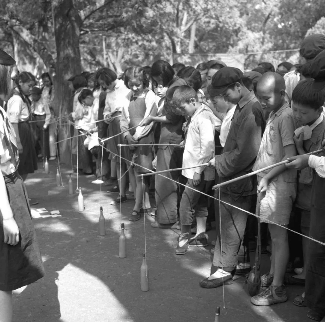 首都儿童庆祝六一儿童节劳动人民文化宫游园大会。这是园内游戏之一:“钓木瓶”(1951年摄)。葛力群 摄