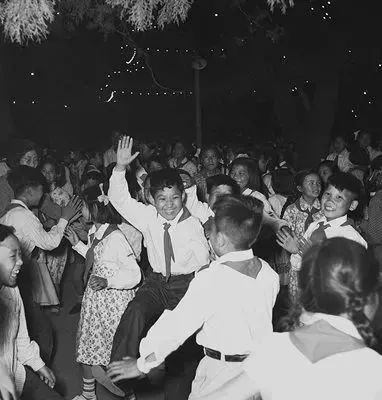 儿童在中山公园游园联欢,庆祝“六一”国际儿童节(1957年5月31日晚摄)。新华社 楚英 摄(资料照片)