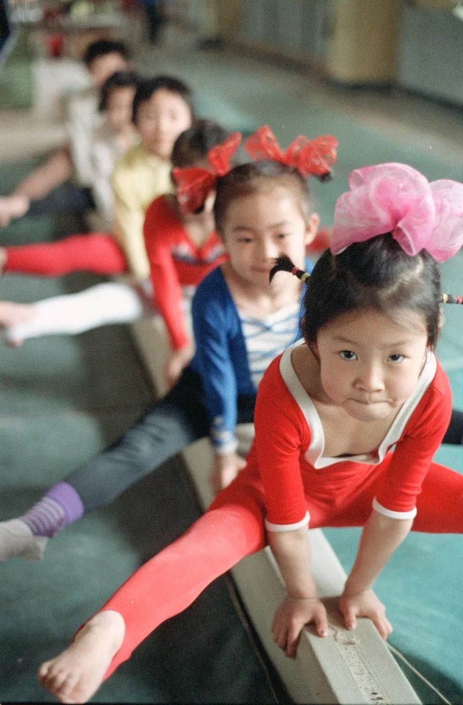 北京什刹海体育运动学校幼儿体操班的儿童在训练(1989年摄)。新华社记者 李明放 摄