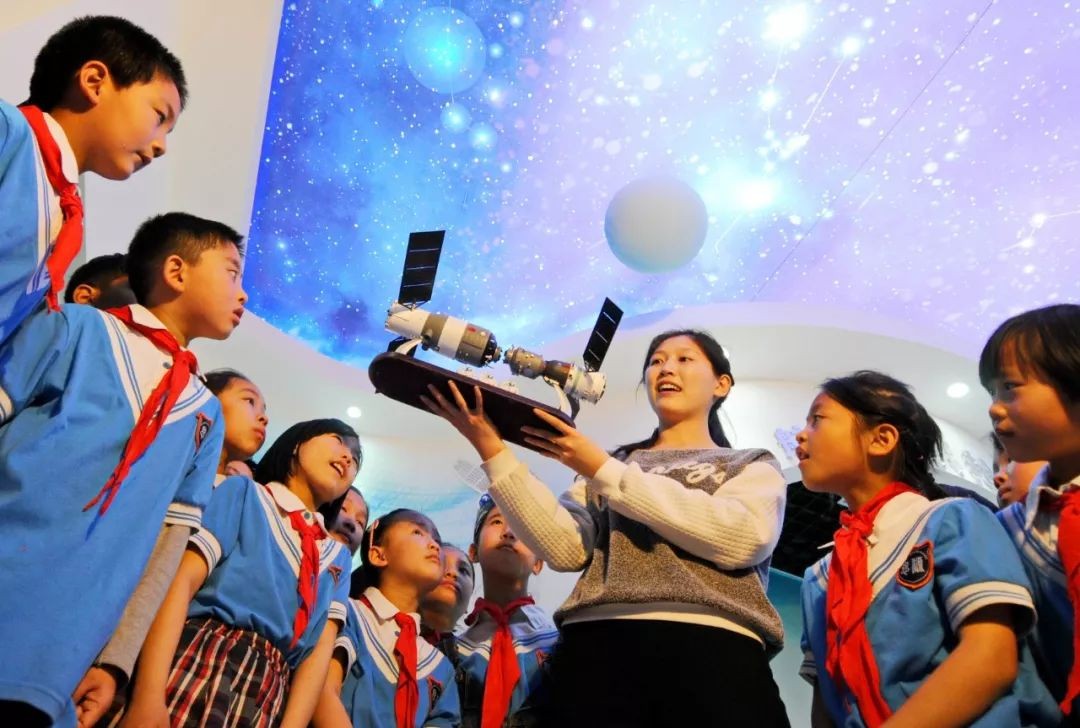 河北邢台,老师为同学们讲解航天知识(2016年4月24日摄)。新华社记者 朱旭东 摄