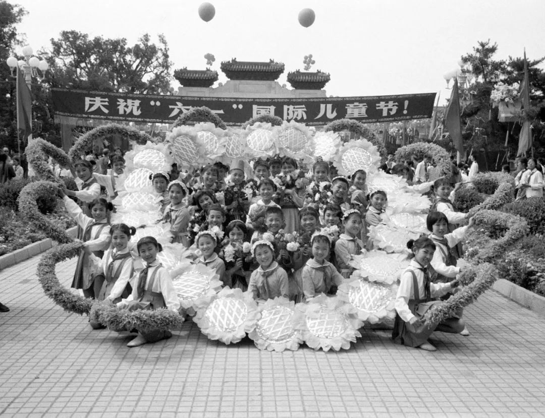首都少年儿童在北京市少年宫举行盛大游园联欢活动,热烈庆祝“六一”国际儿童节(1977年6月1日摄)。新华社发(资料照片)