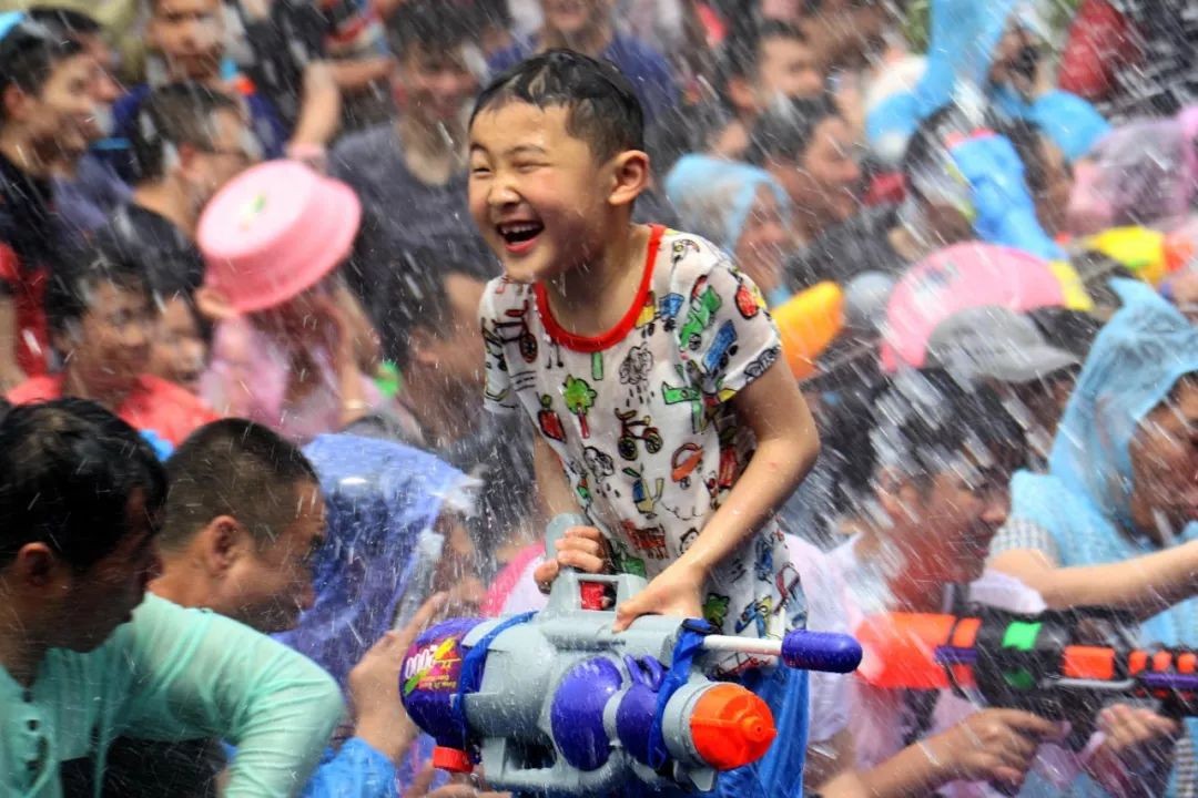 一名小朋友在云南西双版纳景洪泼水广场参加泼水狂欢(2017年4月15日摄)。新华社发(邵滨 摄)