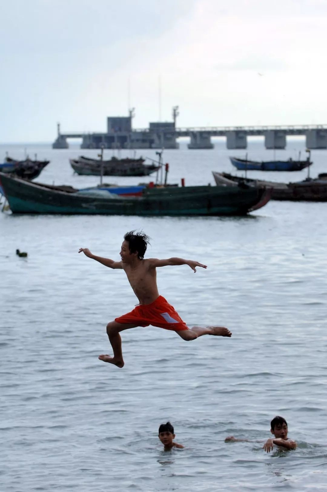 海口市新海渔村的孩子们在海边戏水,以自己独特的方式庆祝儿童节(2007年6月1日摄)。新华社记者 赵颖全 摄