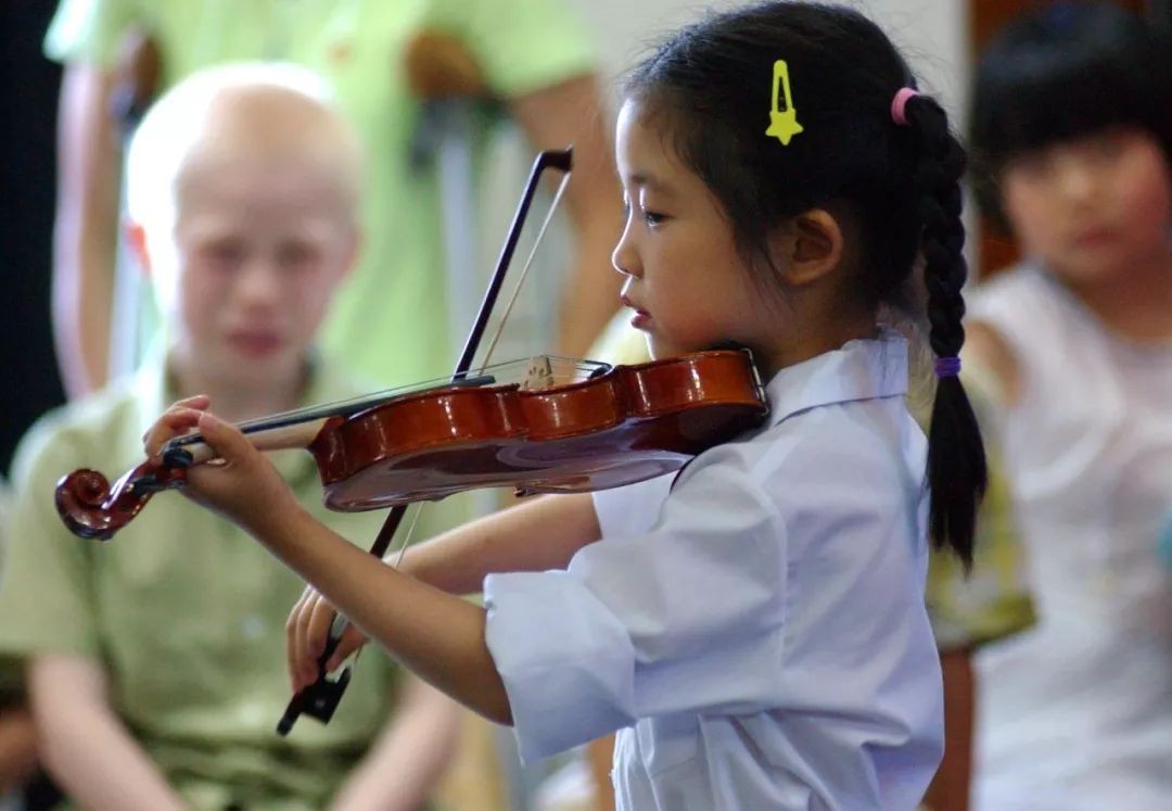 一名音乐学校的学生为合肥福利院儿童演奏小提琴(2005年6月1日摄)。新华社发