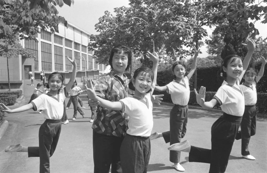 上海,老师指导艺术团练习基本功(1979年6月摄)。新华社发